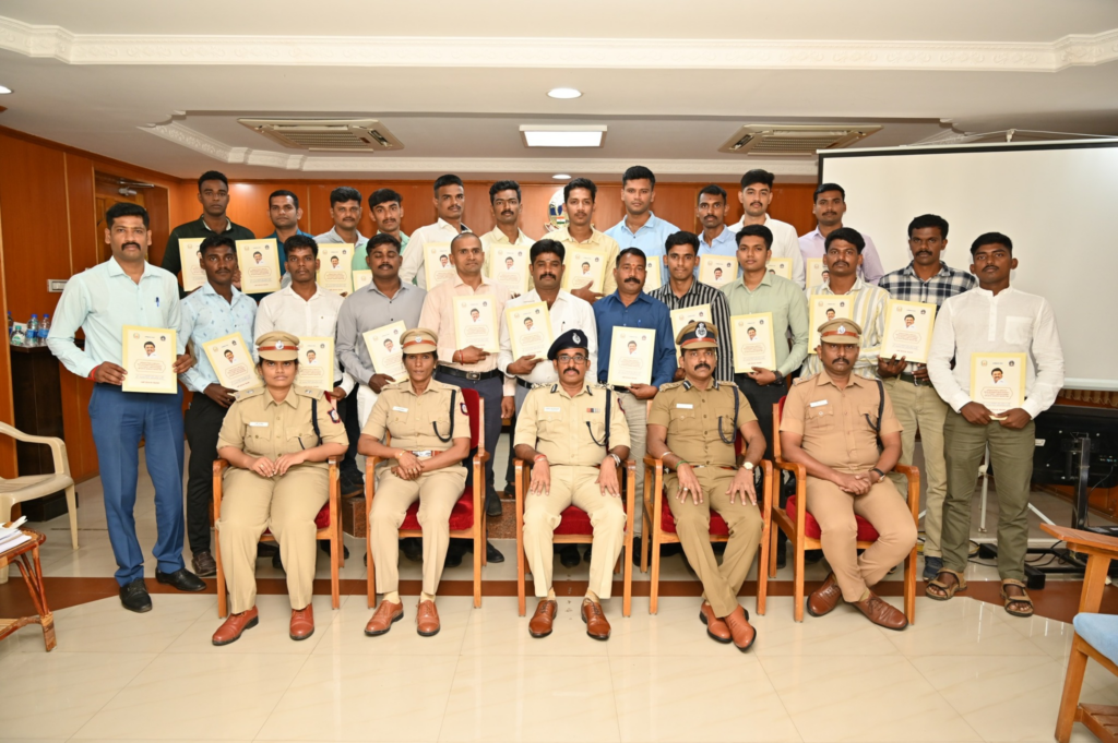 இன்று (27.11.2024) மாநகர காவல் ஆணையர் அலுவலகத்தில், மதுரை மாநகரிலிருந்து இரண்டாம் நிலை காவலர் பணிக்கு சீருடைப் பணியாளர் தேர்வு வாரியத்தால் (TNUSRB) தேர்வு செய்யப்பட்ட 34 காவலர்கள் மற்றும் 3 சிறைத் துறை காவலர்களுக்கான பணி நியமன ஆணையை மாநகர காவல் ஆணையர் முனைவர் ஜெ.லோகநாதன் இ.கா.ப., அவர்கள் வழங்கினார். இந்நிகழ்ச்சியில் துணை ஆணையர் தலைமையிடம் திருமதி. ராஜேஸ்வரி, மதுரை சரக சிறைத்துறை துணைத் தலைவர் திரு.பழனி, மதுரை மத்திய சிறை கண்காணிப்பாளர் திரு.சதீஷ்குமார் மற்றும் மதுரை தமிழ்நாடு சிறப்பு காவல் படை ஆறாம் அணி துணைத் தளவாய் (ADSP) திருமதி.BH.ஷாஜிதா ஆகியோர் உடன் இருந்தனர்.