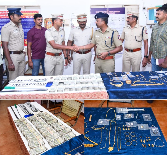 பொள்ளாச்சி மகாலிங்கபுரம் காவல் நிலையத்துக்கு உட்பட்ட ஒரு வீட்டில் சுமார் 75 லட்ச ரூபாய் மதிப்புள்ள 136 பவுன் நகை மற்றும் 3 லட்சம் ரொக்கத்தை திருடி சென்ற குற்றவாளிகளை பல சிசிடிவி கேமராக்களை ஆய்வு செய்து மதுரையில் சென்று கைது செய்த பொள்ளாச்சி மகாலிங்கபுரம் உதவி ஆய்வாளர் நவநீதகிருஷ்ணன் தலைமையிலான தனிப்படையை மாவட்ட எஸ்பி கார்த்திகேயன் காவல் நிலையத்திற்கு சென்று பாராட்டினார்.
