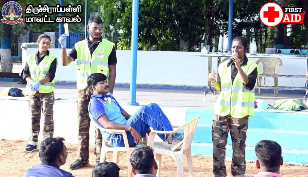 திருச்சி மாவட்ட காவல் கண்காணிப்பாளர் திரு.செ.செல்வநாகரத்தினம், இ.கா.ப., அவர்களின் அறிவுரையின்படி, திருச்சி மாவட்ட காவல்துறையில் சட்டம் ஒழுங்கு மற்றும் ஆயுதப்படையில் பணிபுரியும் காவலர்களுக்கு First Heart Foundation Network பேரிடர் மீட்பு மற்றும் பயிற்சி நிறுவனத்தின் அனுபவம் பெற்ற பயிற்சியாளர்கள் மூலம் பேரிடர் காலங்கள் மற்றும் எதிர்பாராமல் ஏற்படும் விபத்து நேரங்களில் பாதிக்கப்பட்டவர்களை கையாளும் முறை மற்றும் அவர்களுக்கு அளிக்க வேண்டிய முதல் உதவிகள்(FIRST AID) குறித்து பயிற்சி வழங்கப்பட்டது.