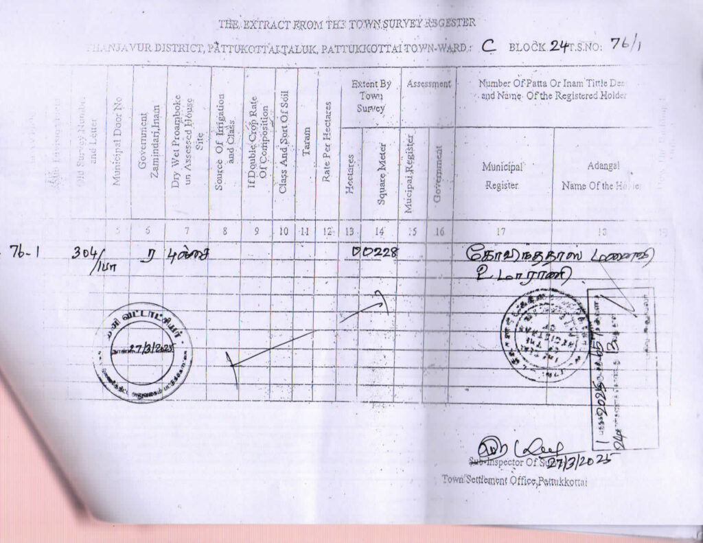 பட்டுக்கோட்டை வட்டம் மற்றும் நகரம் வார்டு Bல் வருவாய் பின் தொடர் பணிகள் (Settlement) 1.8.2024 முதல் வட்டாட்சியர் அலுவலகத்தில் செயல்பட்டு வருகிறது. இதற்கு முன்பாக ஓர் ஆண்டாக C வார்டுக்கு வருவாய் பின் தொடர் பணிகள் நடைபெற்று ஏறத்தாழ இறுதி கட்டத்தில் முடிவடையும் தருவாயில் பணிகள் நடைபெற்று வந்தன. வார்டு Bக்கு புதிதாக சார் ஆய்வாளராக பி.ஜான் கென்னடி என்பவரும் வார்டு Cக்கு சார் ஆய்வாளராக கார்த்திக் என்பவரும் 4 ஆண்டுகள் தொடர்ச்சியாக பணியாற்றி வந்தனர்.