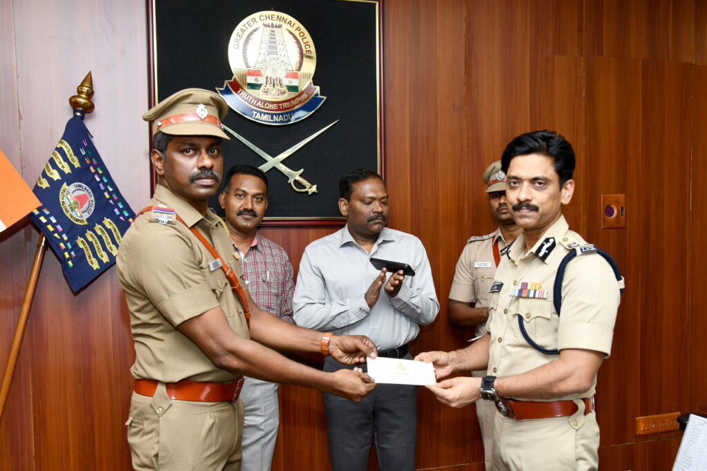 மேற்கண்ட சிறப்பாக செயல்பட்ட ANIU உதவி ஆணையாளர் திரு.மனோஜ்குமார் மற்றும் காவல் ஆய்வாளர்கள் திரு.M.ஜானி செல்லப்பா, திரு. N.ராஜாசிங், உதவி ஆய்வாளர்கள் திரு.K.பொன் பாண்டியன், திரு.T.ஜெயகுமார், தலைமைக் காவலர்கள் திரு.சுந்தரமூர்த்தி (த.கா.26273), முதல்நிலைக்காவலர் திரு.மணிகண்டன், (மு.நி.கா.46781), காவலர்கள் திரு.ஹரி (கா.55234), திரு.சுதாகர், (கா.50425), திரு.ராஜா (கா.61013), திரு.கண்ணன் (கா.58537), பெண்காவலர் திருமதி.கோபிகா (பெ.கா.58709) ஆகியோரை சென்னை பெருநகர காவல் ஆணையர் திரு.ஆ.அருண், இ.கா.ப., அவர்கள் (01.07.2025) நேரில் அழைத்து, வெகுமதி வழங்கி பாராட்டினார்.