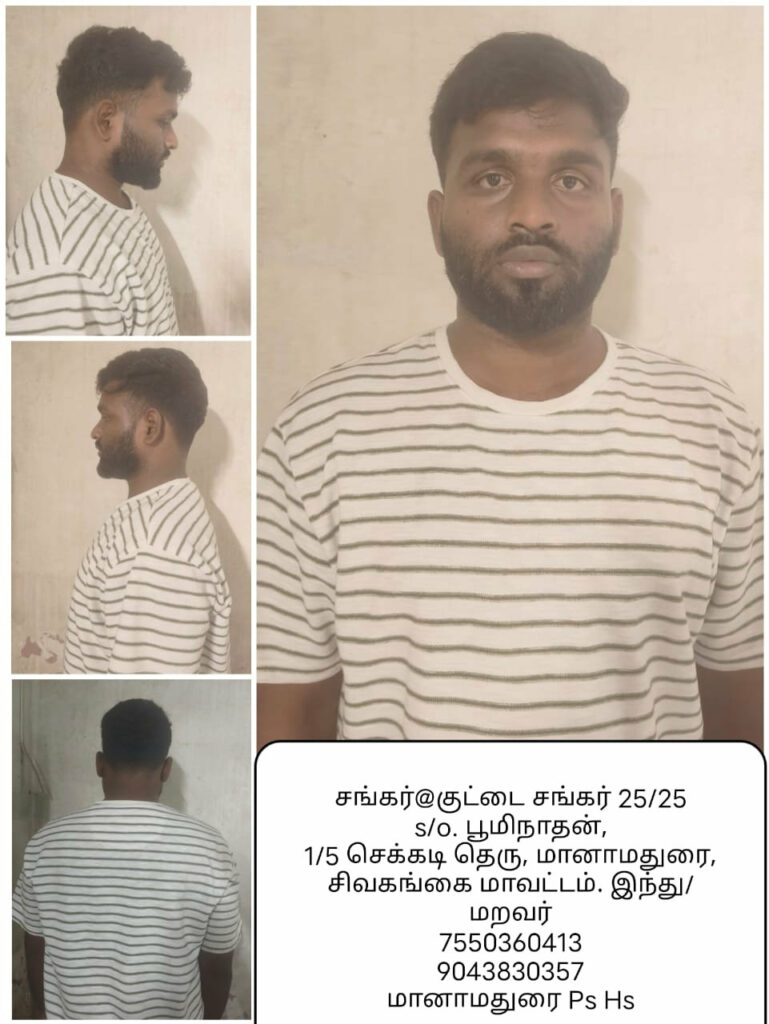 - குட்ட சங்கர் @ சங்கர் 25/25, பூமிநாதன், செக்கடி தெரு, மானாமதுரை, ராமநாதபுரம் மாவட்டம்.